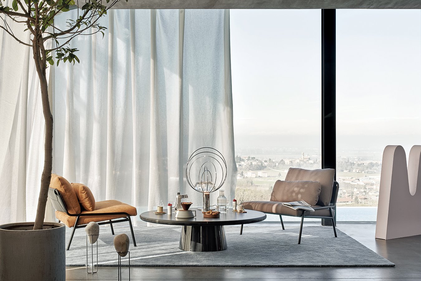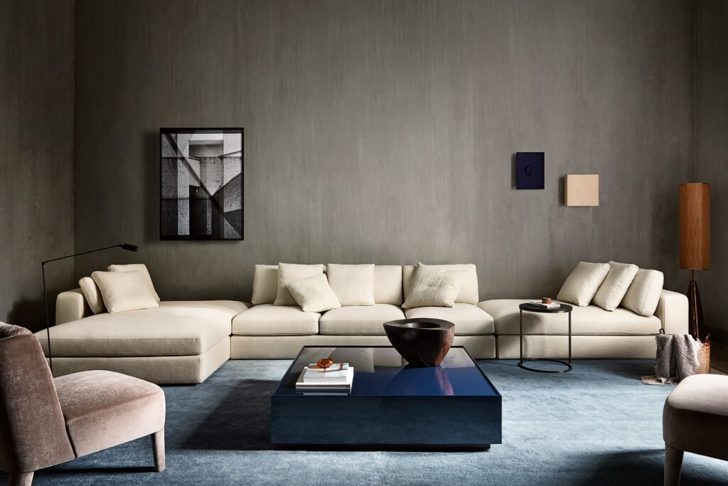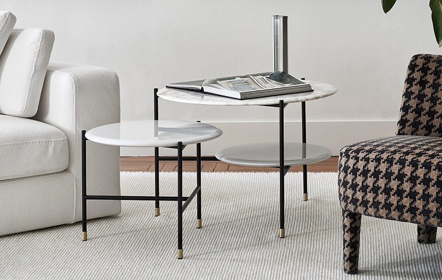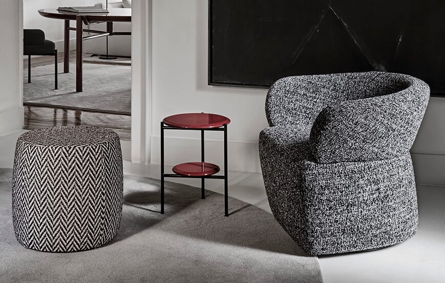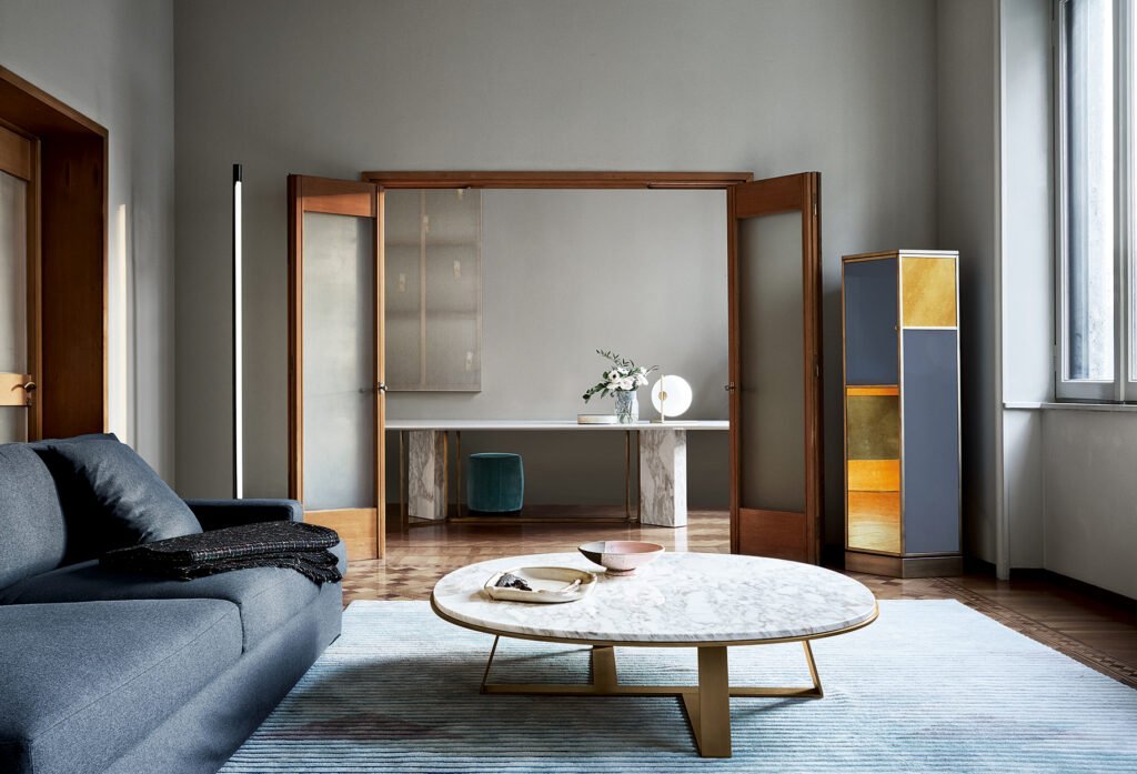 Meridiani offers collections of sophisticated and international designs for both living and sleeping areas, consisting of sofas made of exclusive fabrics and accessories in marble and brass, even extending to outdoor furniture.