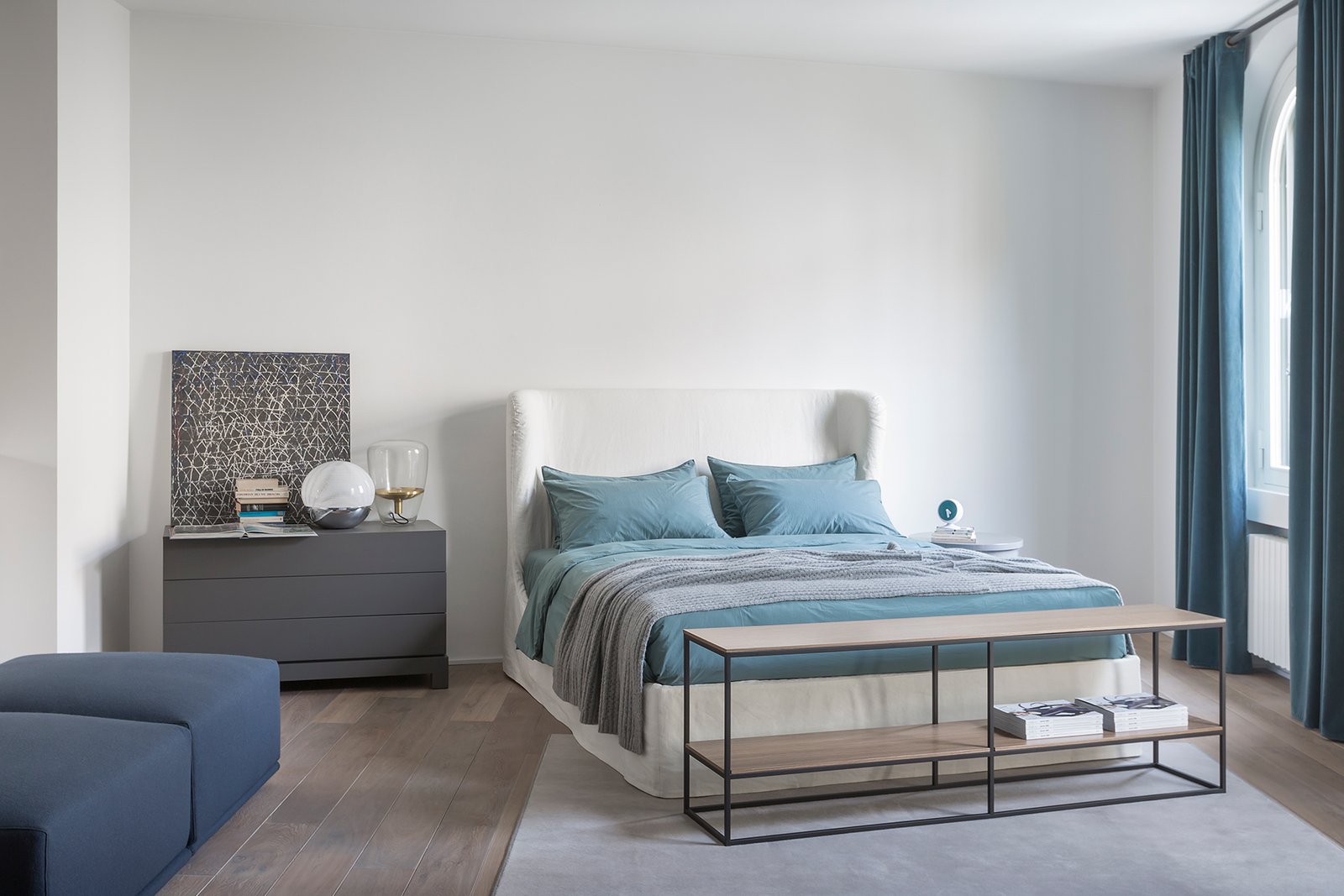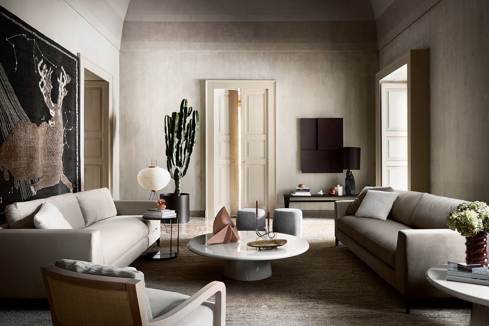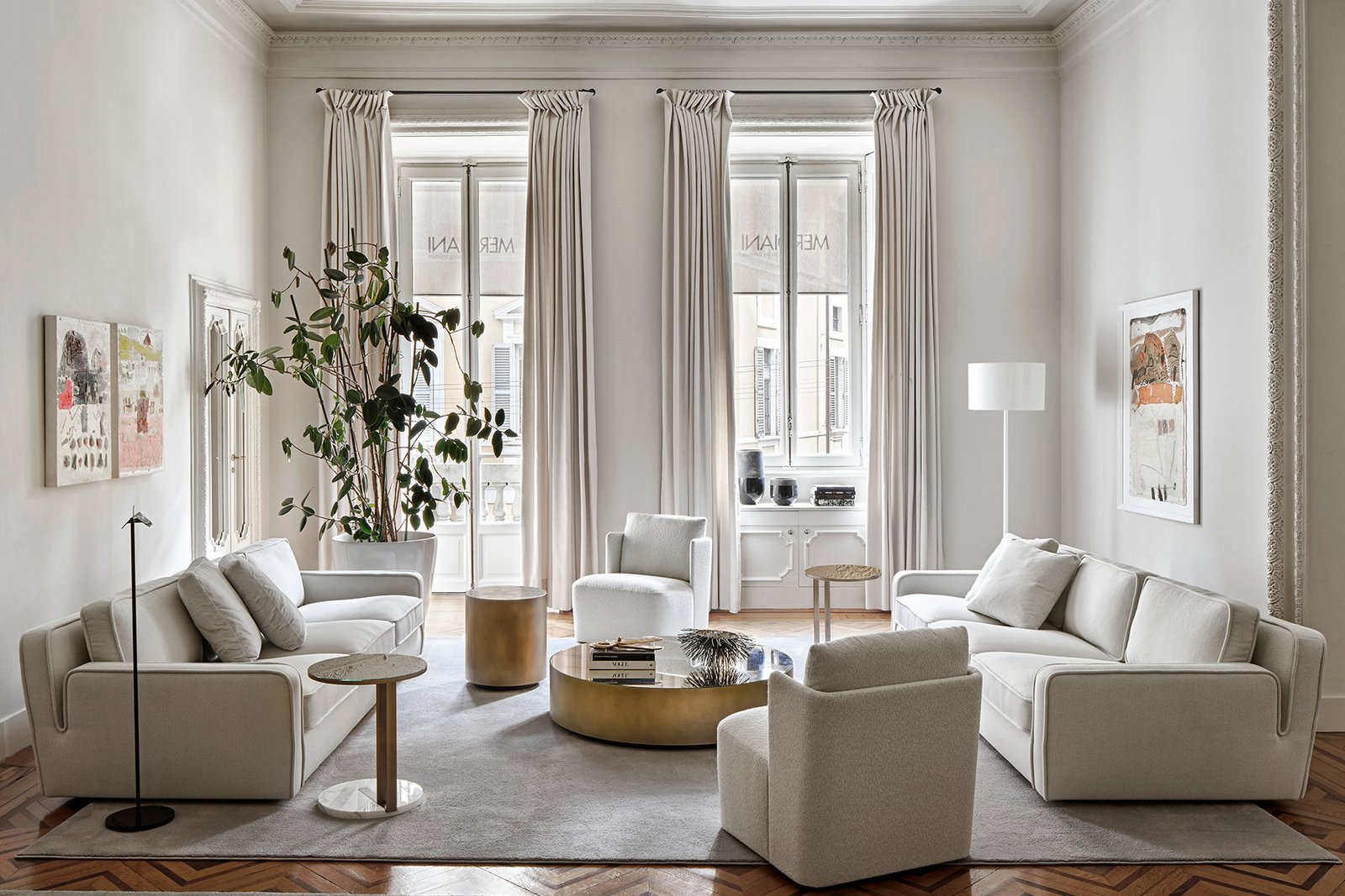 Meridiani offers collections of sophisticated and international designs for both living and sleeping areas, consisting of sofas made of exclusive fabrics and accessories in marble and brass, even extending to outdoor furniture.